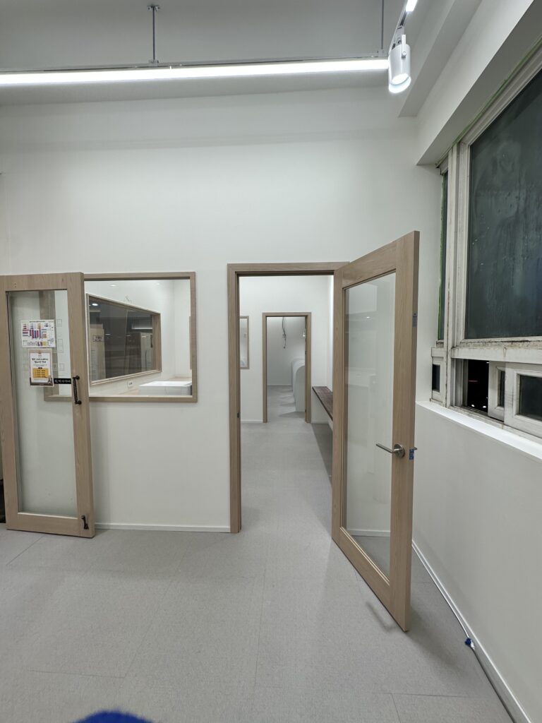 강의실과 강의실 사이의 가벽을 부분 철거하고 픽스창을 설치요청